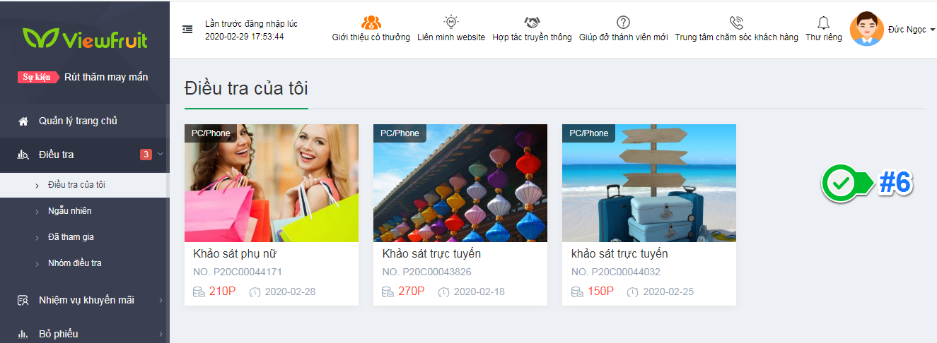 Nếu bạn muốn làm khảo sát kiếm tiền và thẻ cào hiệu quả 2021 tối đa được số điểm thưởng bạn phải cập nhật thông tin tài khoản của mình thường xuyên. Vì những thông tin hồ sơ cập nhật, bạn sẽ nhận được các khảo sát online mới và có nhiều cơ hội kiếm tiền hơn. Do vậy mới thấy phần khảo sát riêng người khác có còn bạn thì không.